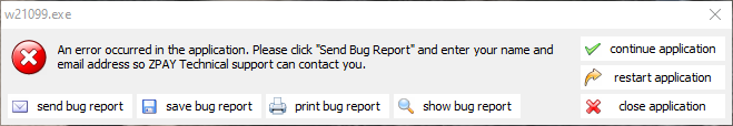 W2-1099FormWindow has code in it to help us help you if you run into a problem where the software might fail. Please read below so we can see exactly where the software failed and help you get it fixed.