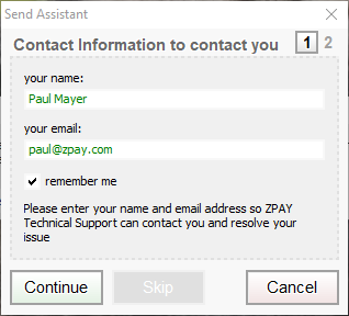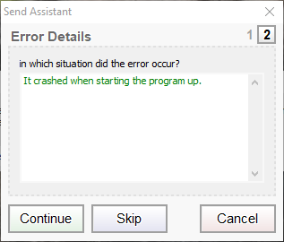 That will open the next Window asking for details on what you were doing when the bug report tool popped up. This along with the bug report will help us help you as well as make our software better going forward. After filling out the form, click the Continue button to send us the information.